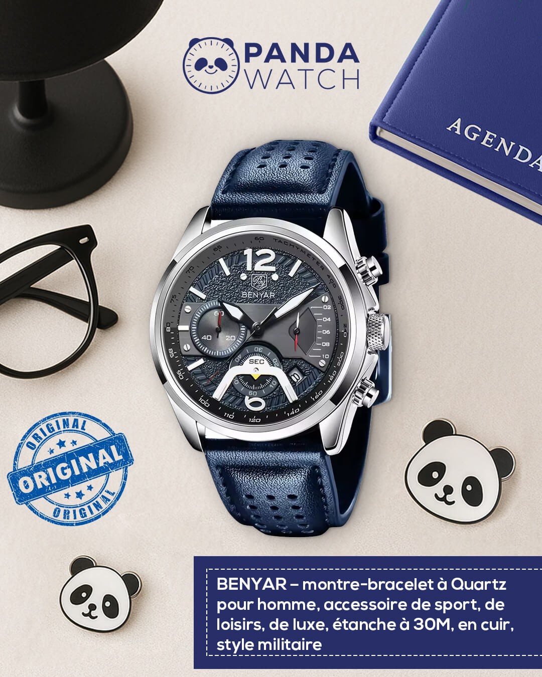 BENYAR 5171 nouvelle montre pour hommes mode sport chronographe multifonctionnel en cuir montre à Quartz hommes montres haut de gamme marque